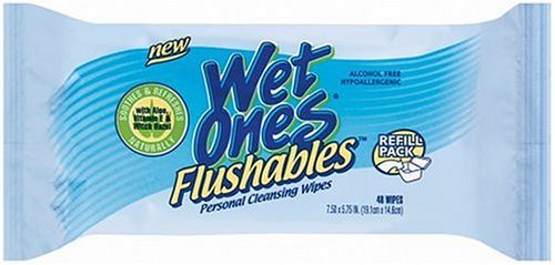 Wet Ones Flushables Personal Cleansing Wipes with Aloe, Vitamin E & Witch Hazel, 48 Count, Refill Pack Overview